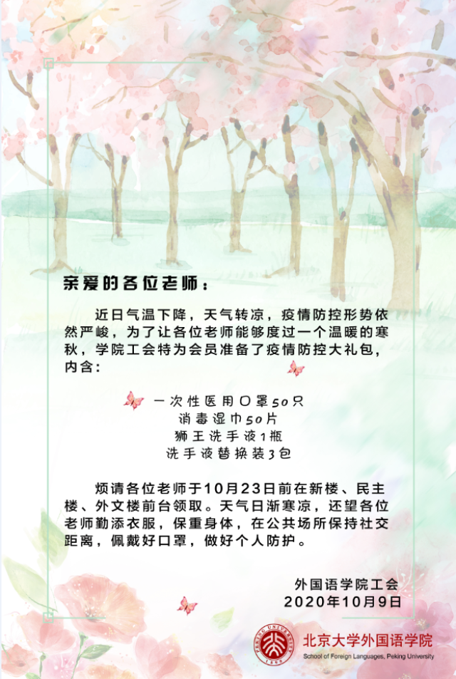 学院为工会成员发放防疫物资