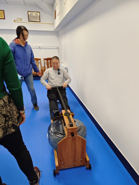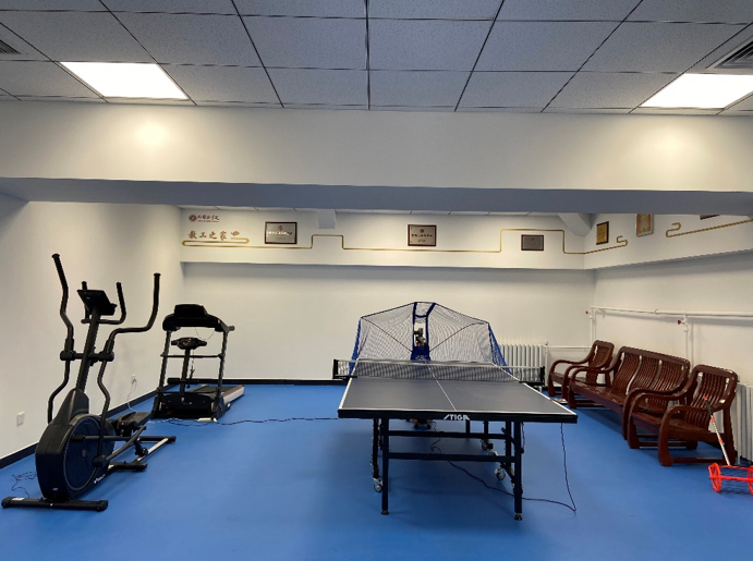 校工会领导们体验了健身器材。自工会之家投入使用之后,外院工会不断对其进行优化,科学运用工会经费,不断添置适用的健身器材,持续进行环境美化。现在工会之家已有乒乓球台、自动发球机、跑步机、椭圆仪、动感单车、划船机等各类专业健身器材,学院工会所获各类奖牌彰显着新利·体育“模范职工小家”的风采。