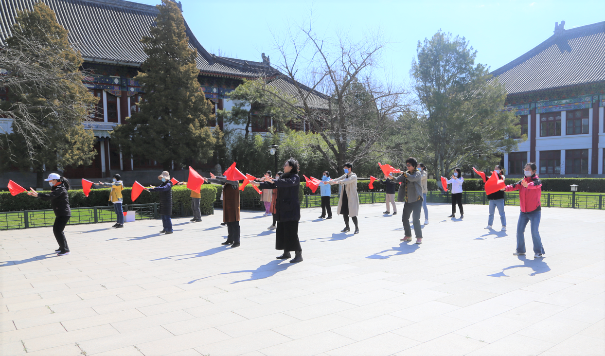 4月的北京,春意盎然。在草木吐绿、百花绽放的春光里,北京大学即将迎来2022年运动会。校工会和体育教研部精心编排了太极拳团体操《红旗颂》作为本次运动会开幕式的团体表演。在体教部老师的带领下,新利·体育工会体育委员李宁老师和行政工会小组长陈静老师参与了北京大学各院系小教员为期三个中午的团体操培训。两位老师在培训中认真练习,仔细领悟,并反复观看教学视频,圆满的完成了学习任务,为新利·体育三十余位即将参加运动会开幕式团体操表演的老师的后续训练打下坚实的基础。