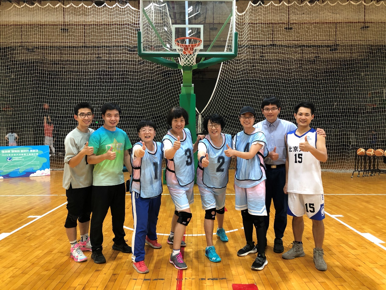 外院代表队在半决赛中的对手是状态火热、此前多次完成全部10球命中的图书馆代表队。首次在室内场地参赛,队员们早早来到场地,在候场期间积极热身。比赛开始后,队员们发挥稳定,最后一分钟张冬梅、林琳老师先后投中两侧底角的远投,成功取得领先,刘军老师45度角远投命中将比分锁定在9:6,外院代表队挺进决赛!