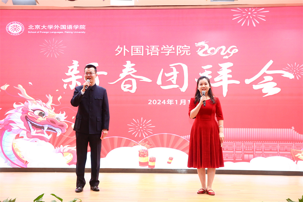 一元复始,万象更新。2024年1月10日下午,博雅国际酒店中华厅张灯结彩、暖意融融,新利·体育2024年新春团拜会在这里举行。伴随着风格迥异的多语种新年歌曲,2023年度学院发生的件件大事、喜事缓缓呈现在屏幕之上。北大外院220余位在职和离退休教师欢聚一堂,互道新年祝福、共忆往昔美好、齐话学院未来。在主持人德语系助理教授毛明超、阿语系博士后孔雀温馨开场后,新春团拜会正式拉开序幕。