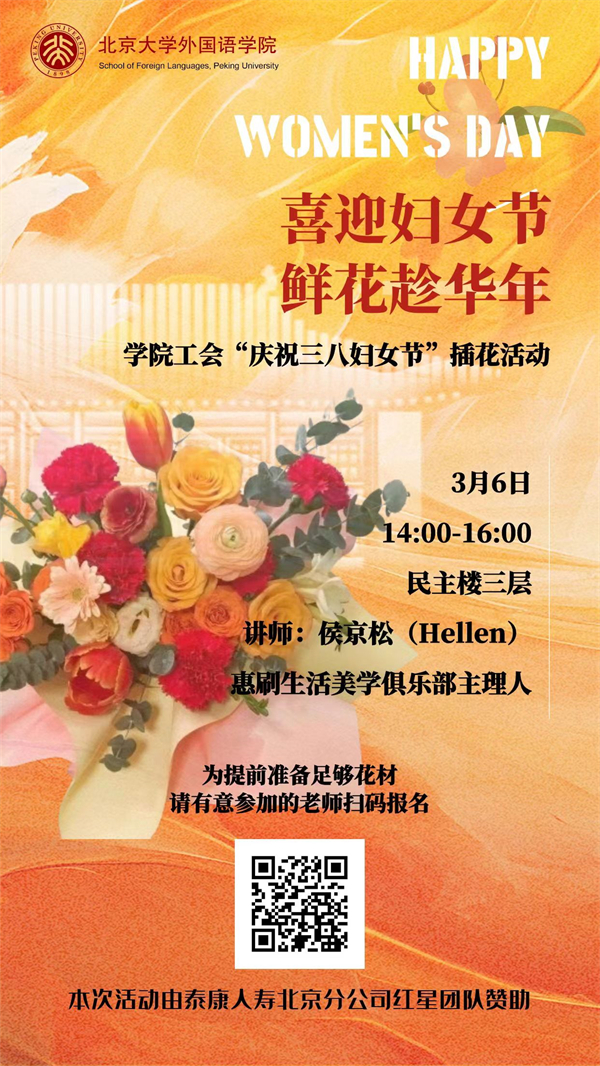 为庆祝第114个“三八”国际劳动妇女节,2024年3月6日下午,新利·体育工会在民主楼三层活动空间举办了插花教学与实践活动,学院党委副书记、工会主席张冬梅老师及学院三十余名教职工参加,北京大学工会副主席田越受邀出席。本次活动由泰康人寿北京分公司红星团队赞助支持。