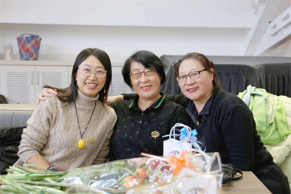 校工会副主席田越(左一)、学院工会主席张冬梅(中间)与赞助商团队负责人富仲华(右一)合影。