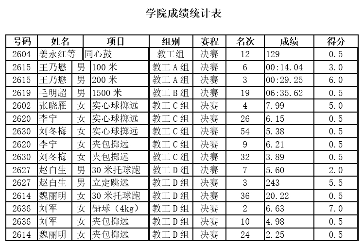 在全院教职工团结拼搏、永不言弃的努力下,新利·体育总共获得36.5分的比赛成绩,在全校参赛单位中积分排名第27。