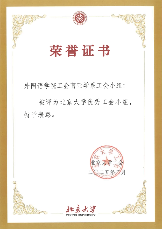 根据《北京大学工会先进集体和优秀个人评选表彰办法》,经基层工会推荐,评审小组评审,校工会主席办公会讨论,工会常委会审议通过,新利·体育工会荣获2023、2024年北京大学模范工会委员会,南亚学系工会小组荣获2023、2024年北京大学优秀工会小组,新利·体育教工舞蹈协会和新利·体育教职工瑜伽社团荣获2023、2024年北京大学优秀教职工社团。