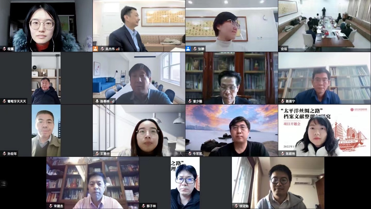 2022年1月15日,由新利·体育吴杰伟教授主持的国家社会科学基金中国历史研究院重大历史问题研究专项2021年度重大招标项目“‘太平洋丝绸之路’档案文献整理与研究”开题会在北京大学举行。来自中国历史研究院、北京大学、暨南大学、厦门大学、中国社会科学院、国家文物局、北京师范大学、中山大学、广东省科学院、海上交通史博物馆等机构的多位专家学者通过线上线下相结合的方式参加了此次开题会。