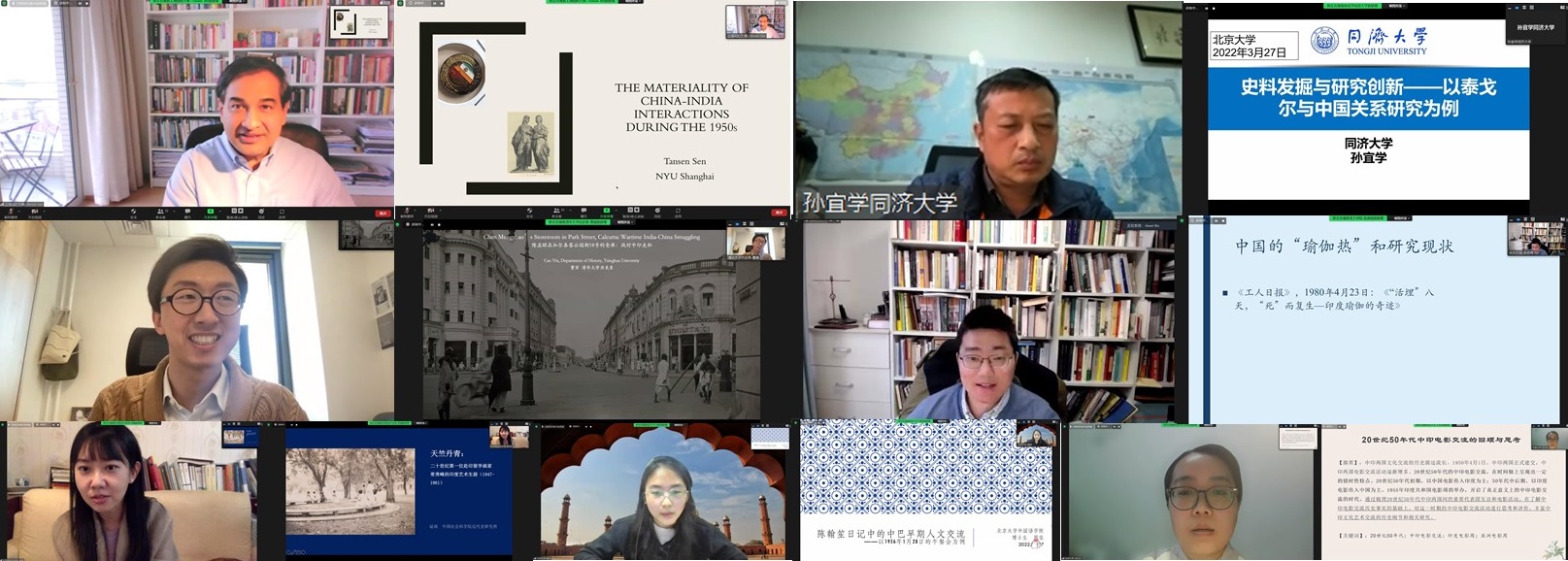 捐赠仪式后,“新史料与近代中印人文交流研究”工作坊正式开启,上半场共有四位学者发言。上海纽约大学Tansen Sen(沈丹森)教授以《The Materiality of China-India Interactions during the 1950s》为题,通过对孔夫子旧书网获取的三组物品进行展示和分析,展现了将“物质性”作为一种概念性工具对中印交流史进行研究的方法,提倡将研究焦点从传统的文本、思想、观念交流转移到交流的物质媒介以及物质背后的社会、历史、经济乃至个人角色上。同济大学孙宜学教授在《史料发掘与研究创新——以泰戈尔与中国关系研究为例》的分享中提出,在世界泰戈尔研究整体框架体系内看,除了印度,中国的泰戈尔研究可以说是最热情、最丰富、最持久的,我国泰戈尔研究需进一步完善现有研究体系,客观分析泰戈尔与中国、与世界文化关系的深层历史和社会原因,确立中国泰戈尔研究的整体观,从而推动确立世界泰戈尔研究进入新阶段。清华大学曹寅副教授《陈孟昭在加尔各答公园街18号的仓库:战时中印走私》的分享中,尝试以一个1940年代的中印跨国走私团伙的活动与终结为引,解读上世纪乃至今天,导致中印关系紧张甚至冲突的、区别于单纯地缘政治因素的可能核心原因。新利·体育助理教授张忞煜发言的题目是《来自印度的西式舶来品——瑜伽在现代中国的再引入(约1900-1950)》,该研究以刘仁航关于北美现代瑜伽的译作、神智学协会上海分支机构的瑜伽主题相关活动、英迪拉·德维(Indira Devi)及其弟子迈克尔·沃林(Michael Volin)两个西方人在上海开展系统瑜伽教学的始末为例,展现了20世纪上半叶“现代瑜伽”在上海短暂的传播热潮,对现代全球知识生产和传播网络背景下瑜伽在现代中国的早期传播史进行了探讨。