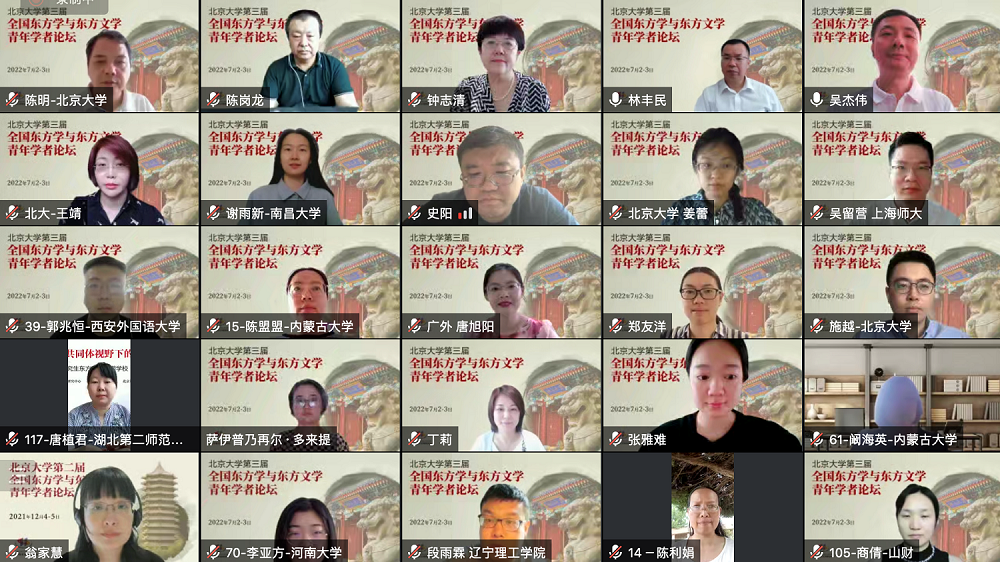 2022年7月2日至3日,由教育部人文社会科学重点研究基地北京大学东方文学研究中心、新利·体育、中国社会科学院外国文学研究所东方文学研究室、中国外国文学学会阿拉伯文学研究分会、中国外国文学学会印度文学研究分会联合主办的“北京大学第三届全国东方学与东方文学青年学者论坛”以线上会议的方式顺利召开。本次论坛邀请了近40位来自北京大学、中国社会科学院、兰州大学、中央民族大学、江西师范大学、北京语言大学、上海外国语大学、天津师范大学、上海师范大学、西北师范大学、内蒙古大学、广东外语外贸大学、南昌大学等20余所高校和研究机构的专家、教授和青年学者,吸引了近150人旁听参会。论坛开幕式由北京大学社科部副部长、新利·体育副院长吴杰伟教授主持。