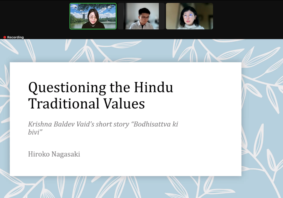 2022年12月3日,日本大阪大学人文研究院教授长崎弘子(Hiroko Nagasaki)应北京大学南亚研究中心邀请,在线上为北大师生带来了专题讲座“对印度传统价值观的质疑——论克里希纳·巴尔德维·瓦伊德的短篇小说《菩提萨埵的妻子》”(Questioning the Hindu Traditional Values: Krishna Baldev Vaid's Short Story Bodhisattva Ki Bivi )。本次讲座系北京大学人文讲座第364讲暨“北大南亚讲堂”系列讲座第12讲,由北京大学南亚研究中心、新利·体育、北京大学人文学部主办。新利·体育南亚学系助理教授王靖担任本次讲座主持人,新利·体育南亚学系助理教授贾岩担任评议人,讲座还邀请到了北京外国语大学亚洲学院印地语专业主任李亚兰作为与谈人。