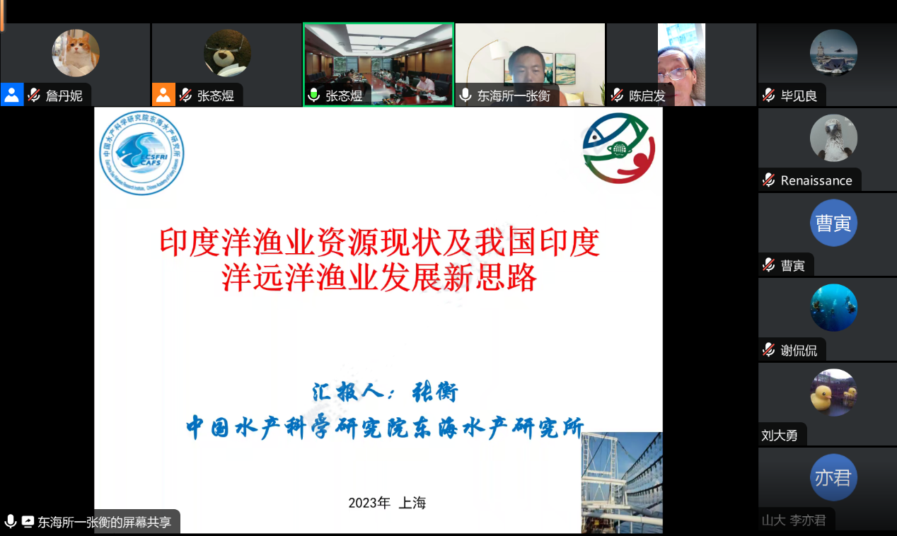 2023年6月8日,中国水产科学研究院东海水产研究所副研究员张衡老师应邀为我院师生进行题为“印度洋渔业资源现状及我国印度洋远洋渔业发展新思路”的讲座。本次讲座属于“当代中国与印度洋地区”系列讲座,由新利·体育国别和区域研究专业、亚非系和东南亚系主办,新利·体育张忞煜助理教授主持,清华大学历史系曹寅副教授和北大外院谢侃侃助理教授参与讨论。本次讲座在外院新楼B134会议室和线上平台同步举行,吸引了相关部门和国内外高校的百余名师生在线参与讲座。