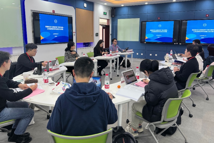 “语言、教育研究”分论坛由北京大学丁一老师和上海外国语大学高陆洋老师先后担任主持,北京第二新利·体育崔英兰老师和上海外国语大学赵新建老师先后进行评议并组织讨论。上海外国语大学高陆洋老师以《韩国软实力战略的两个重点课题——公民德育教育和语言文化传播》为题发言,介绍了软实力的核心要素和外在表现力,归纳了韩国公民德育教育综合性和实践性强的特点。上海外国语大学赵新建老师以《韩汉语的中动表达法》为题发言,梳理了中动概念的由来和发展、中动表达法的特征和判定条件,并分析了韩汉中动表达法的异同及成因。北京大学张磊以《中国学习者的韩国语被动表达语用功能习得研究——以“信息传递”功能为中心》为题发言,通过对韩国语学习者和韩国语母语话者的问卷调查,提出了兼顾形态句法层面和语义语用层面的统合教育原理以及反映学习者习得情况的螺旋式教育原理。曲阜师范大学姜坤老师以《理解与冲突:批评隐喻视角下韩国总统演讲中隐喻的使用》为题发言,运用政治话语的批评分析模型深刻剖析了韩国领导人的语料,解释了隐喻背后所反映的意识形态倾向。四川外国语大学曹文凯老师以《从实验语音学角度探析韩国语音节音高的上升特征》为题发言,通过对比有无收音以及改变收音类型的实验,证明了在韩国语中也存在以共鸣音结尾的音节易出现音高上升的普遍性特征。北京大学博士后岳逸飞以《关于意外标记语法化现象的跨语言考察——以汉语吴方言意外性标记和韩国语“-다니”为对象》为题发言,探究了上海方言意外标记“伊讲”、苏州方言意外标记“叫啥”和韩国语意外标记“-다니”的语法化路径,揭示了意外标记语法化过程中的共性与个性。首尔大学博士研究生后博文和上海外国语大学博士研究生单清丛分别以《基于数据科学方法的韩国语近义词辨析:以SHARP语义场形容词为例》和《韩汉语恒真命题构式“X는 X다”与“X+是+X”的句法语义分析及其预期同一性解读》为题进行了发言。