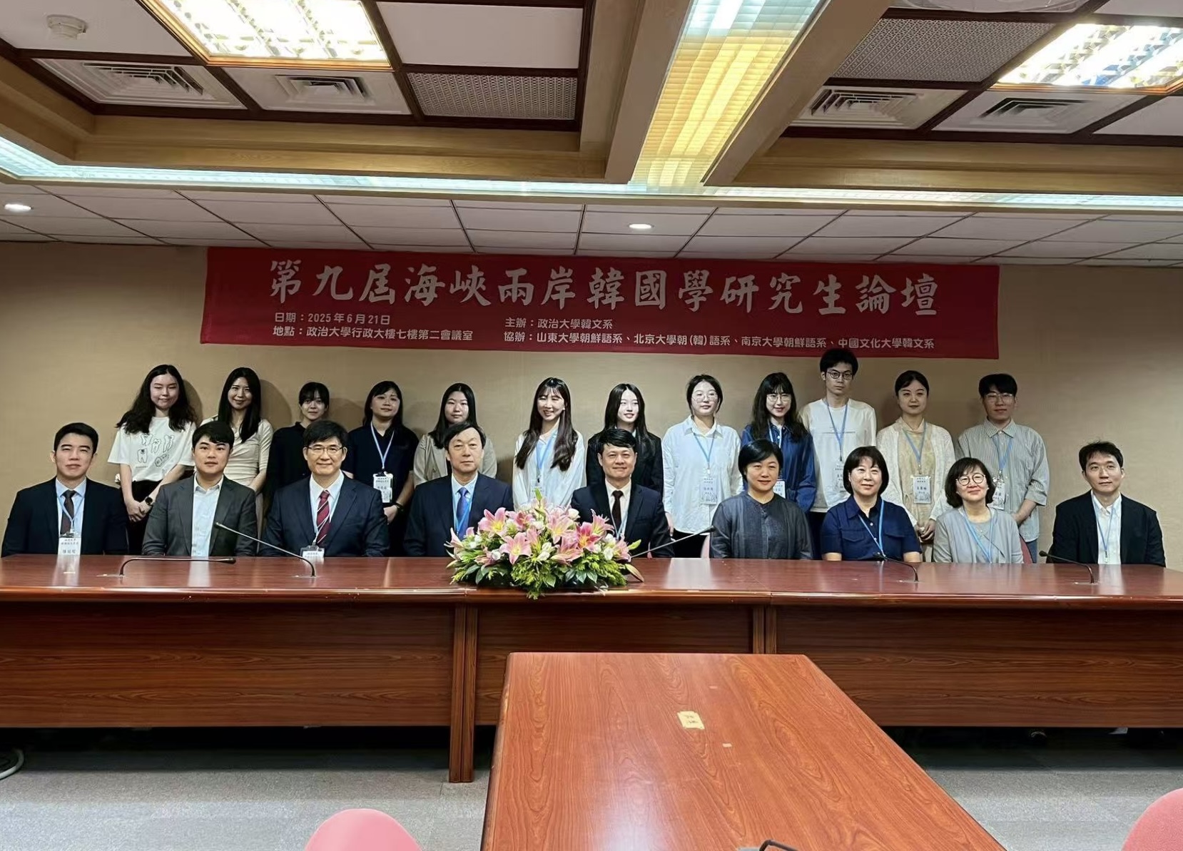 2025年6月21日,“第九届海峡两岸韩国学研究生论坛”在台湾政治大学行政大楼7楼第二会议室举行。来自北京大学、台湾政治大学、山东大学、南京大学、台湾中国文化大学的三十余名专家学者与研究生参会。“海峡两岸韩国学研究生论坛”由新利·体育朝鲜(韩国)语言文化系、山东大学韩国学院、台湾政治大学外国语文学院韩国语文学系于2014年联合发起,2017年南京大学新利·体育朝鲜语系加入。随着今年台湾中国文化大学国际暨外语学院韩国语文学系的加入,论坛已扩展为五校论坛。