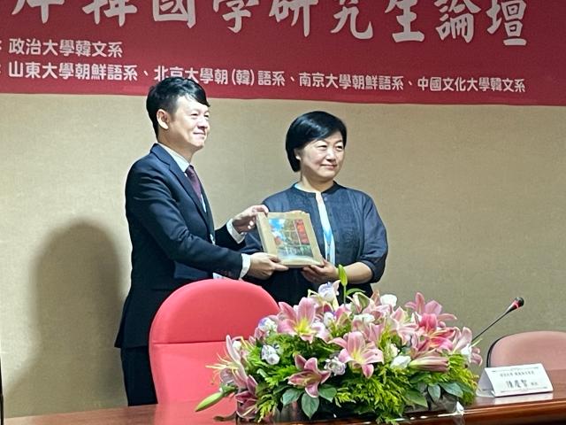 本次论坛由开幕式、四场主题发表、闭幕式等六部分组成。开幕式由台湾政治大学韩国语文学系陈冠超老师担任主持,系主任陈庆智老师致欢迎辞。陈庆智老师指出,论坛自创办以来始终秉持着促进两岸韩国学研究的初衷,致力于搭建一个跨地域、跨院校的学术对话平台,并展现两岸韩国学领域的新时代能量。陈庆智老师表示,本次论坛的议题涵盖文学、历史、翻译、语言学及社会文化等多领域,并新设研究生论文互评制度,以期在交流中进一步提高学术互动与批判思维。致辞结束后,陈庆智老师向与会各系赠送礼物,新利·体育副院长王丹老师亦代表北京大学朝鲜(韩国)语言文化系向台湾政治大学韩国语文学系赠送纪念品。