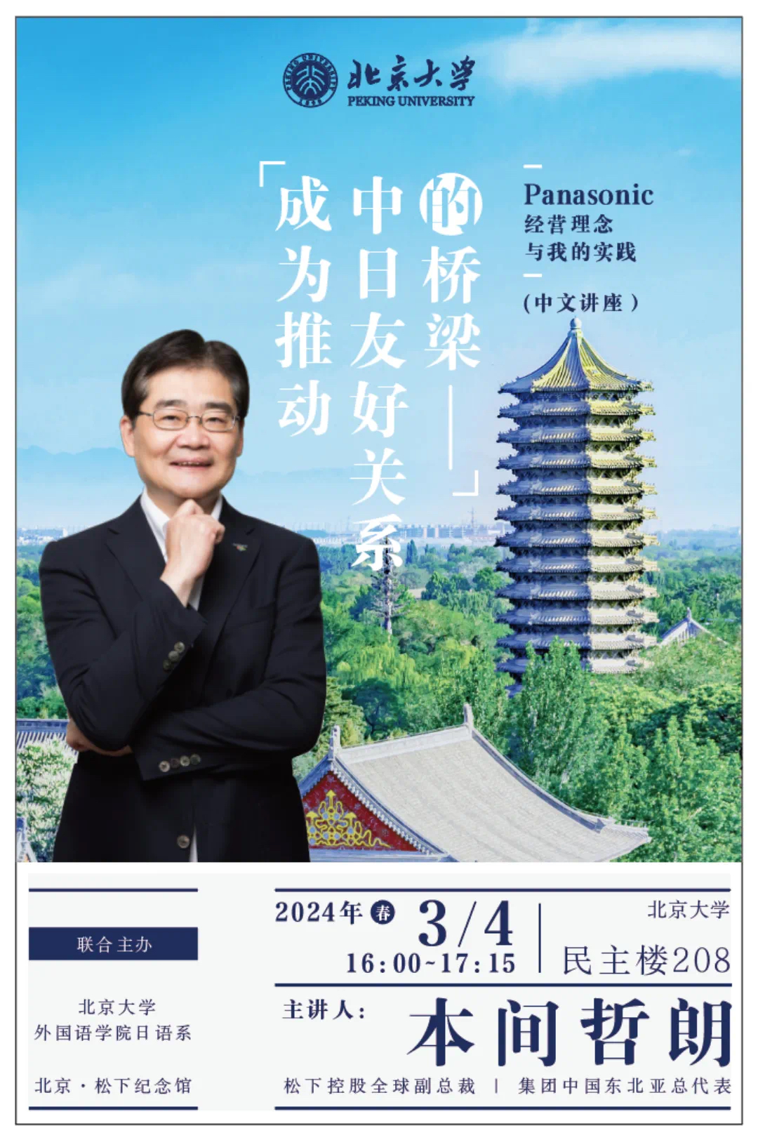 讲座预告:成为推动中日友好关系的桥梁ーーPanasonic经营理念与我的实践