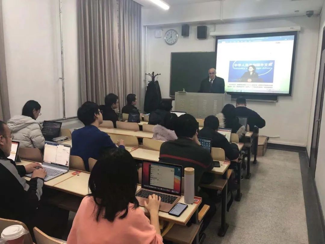 被中国友人亲昵地称呼为“穆大使”的他,以“外交部新闻发布会的阿拉伯文翻译”为题,通过对近日中国外交部例行发布会的翻译、讲解与讨论,给同学们上了直观、生动、深刻的一课。同学们积极参与互动,从具体的单词和句子入手,逐步理解了大使先生翻译的逻辑、方法、理念,和他所传达有关人文、政治的思想。