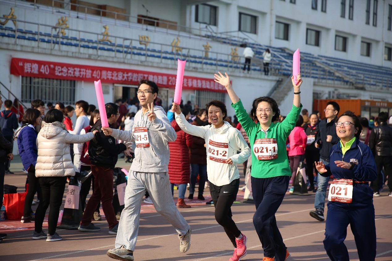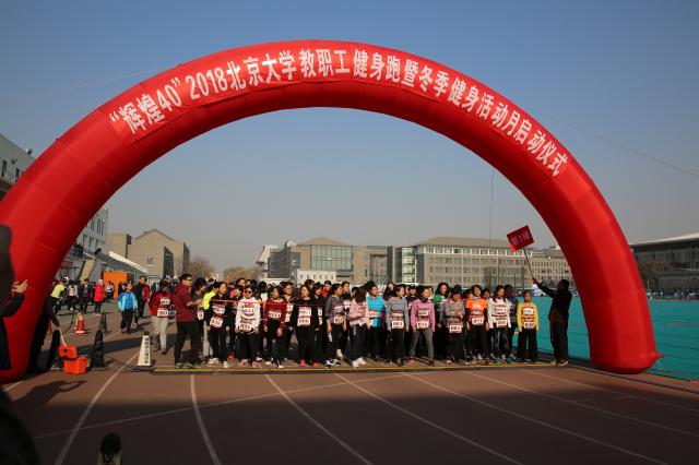 为纪念改革开放四十周年,新利·体育教师纳海、林琳、于施洋、王爱京代表我院参加了北京大学工会组织的“’辉煌40’ 2018北京大学教职工健身跑暨冬季健身活动月启动仪式”的活动。她们于2018年11月30日中午在五四操场上合力长跑40圈。在此次活动中,我院教师充分发挥了奋勇拼搏,勇往直前的精神,轻松完成了16000米的长距离。