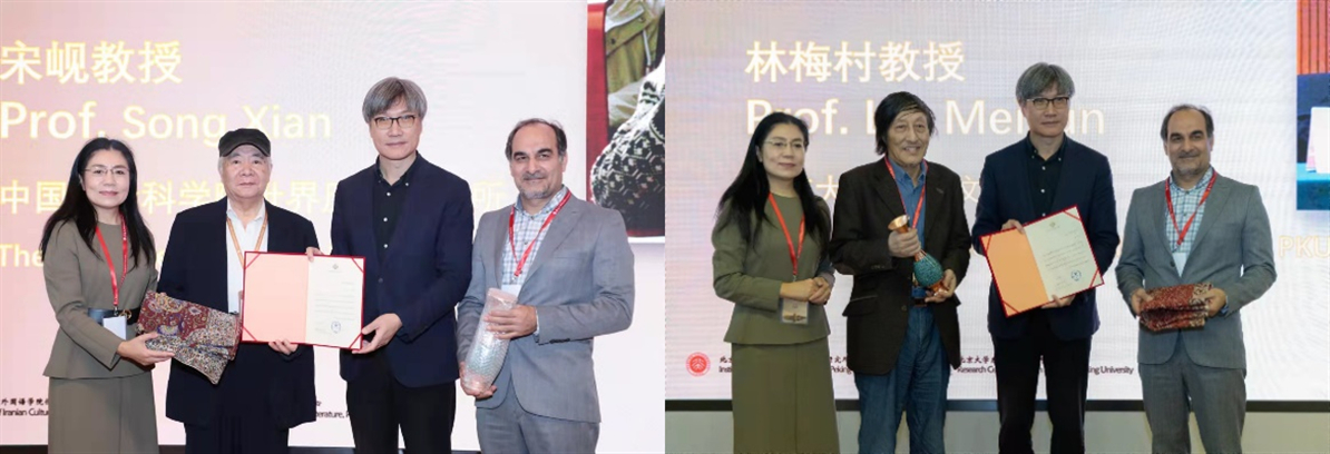 发言结束后,伊朗驻华使馆文化参赞瓦法伊博士与参会领导共同向中国社会科学院世界历史研究所宋岘研究员、北京大学考古文博学院林梅村教授、新利·体育段晴教授颁奖,以表彰他们多年以来在中国伊朗学研究领域做出的卓越贡献。