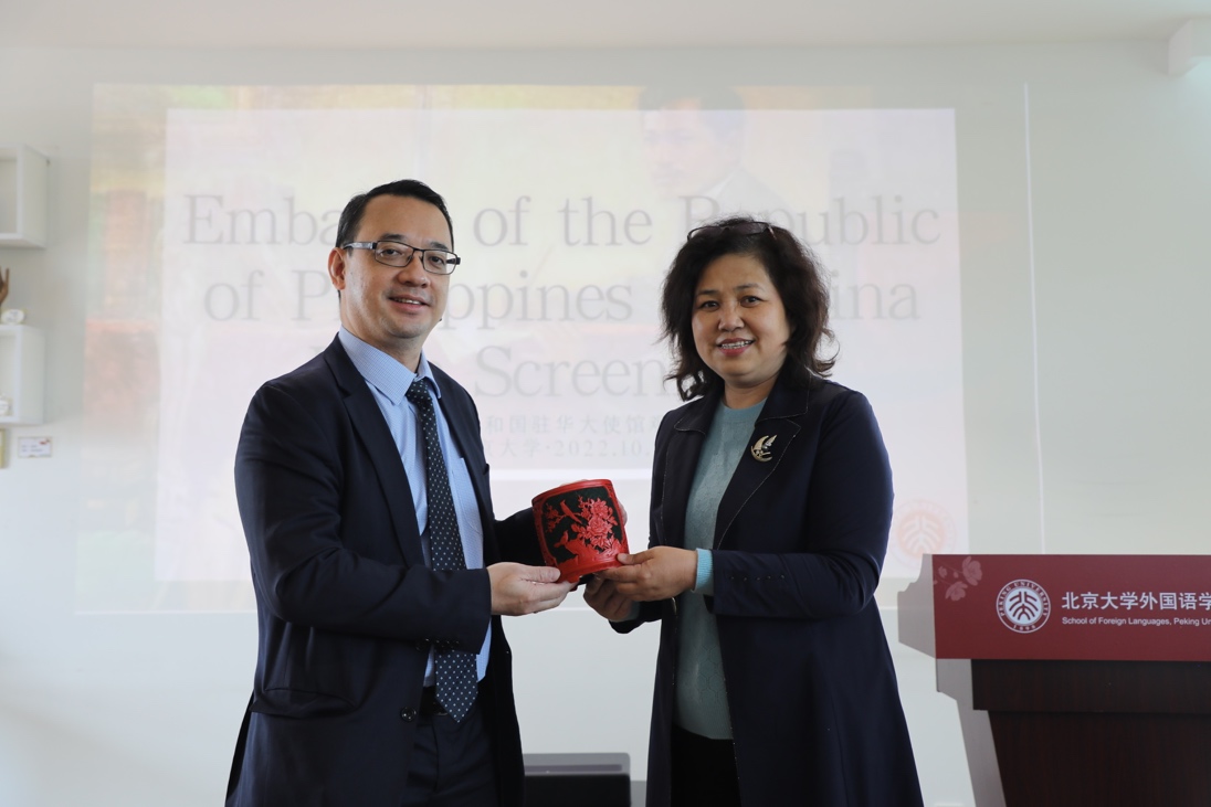 到达新利·体育后,代办欧帝诺先生为电影展映活动致开幕辞。他回顾了两国友好交往的历史,强调了民间人文交流的重要作用,并向北京大学为本次活动作出的努力表示感谢。李淑静书记随后致欢迎辞,表达对欧帝诺代办的诚挚问候,回顾了菲律宾语专业同菲驻华使馆的密切交流,并预祝电影放映圆满举行。