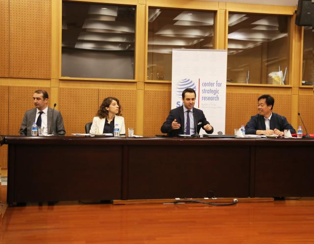 8月27日,代表团应邀参访了土耳其外交部战略研究中心,受到了中心负责人乌夫克•乌鲁塔斯教授(Ufuk Ulutas)的亲切接待。土耳其外交部战略研究中心成立于1995年,宗旨是向土耳其外交政策制定者提供相关事件的科学有效评估。乌鲁塔斯教授给代表团成员做了题为“中东安全问题”的讲座。他首先指出,要理解中东是不容易的,因为该地区存在着多民族、多宗教、多教派和代理人等因素,因此要把握中东地区的趋势是很困难的,但这不应该成为学术研究的阻碍,学者们应该尽力去理解中东的问题。他认为在中东地区主要存在四大冲突焦点,分别是巴以问题、伊朗和海湾国家间的紧张关系、“失败”和“虚弱”的国家(failed and weak states)和非国家/次国家行为体(non-/semi-state actors)。这四大问题及其副作用持续影响并塑造着中东的地区格局。