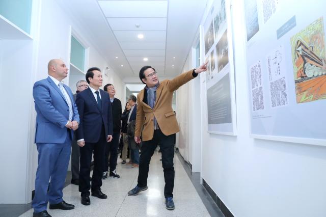 新利·体育党委书记李淑静、副院长张冬梅、德语系主任黄燎宇、文研院常务副院长渠敬东、分子医学研究所研究员雷鸣、校史馆馆长马建钧、国际合作部副部长李昀等校内代表,法国文化中心多媒体图书馆馆长李大维(David LIZIARD),以及法语系师生代表出席了开幕式,并在董强教授的讲解下,一起参观了展览。