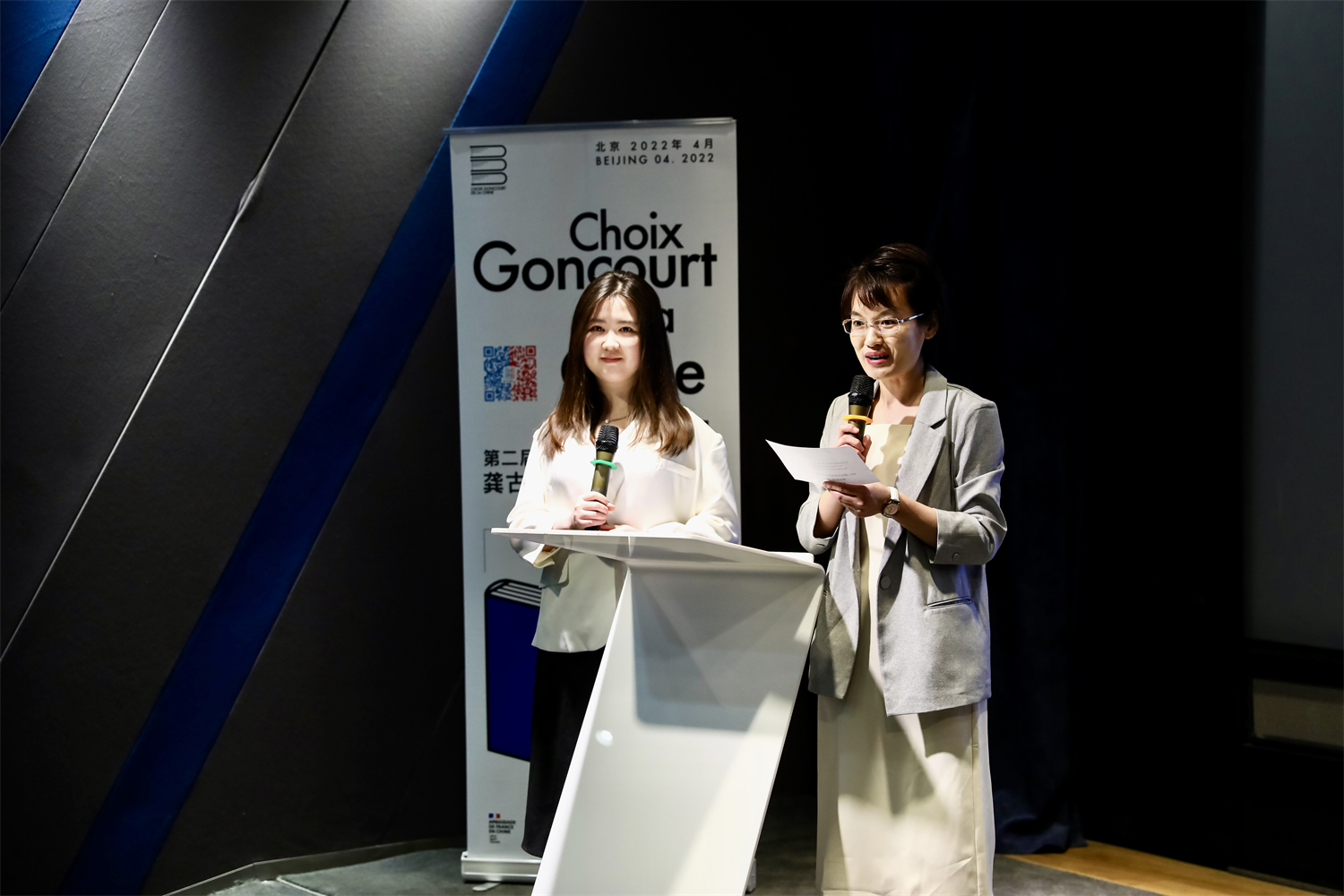 4月15日下午,“2021龚古尔文学奖中国之选”评选结果揭晓仪式在北京法国文化中心举办。“龚古尔文学奖中国之选”的专家组委会成员董强教授、秦海鹰教授和北京外国语大学车琳教授携评审团学生读者出席活动。法国著名作家、龚古尔学院成员皮埃尔·阿苏里和获奖作者穆罕默德·姆博加·萨尔分别从法国巴黎和塞内加尔发来祝贺视频和感言。法国驻华大使罗梁阁下出席并致辞。