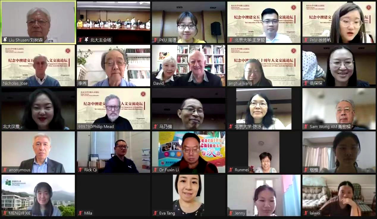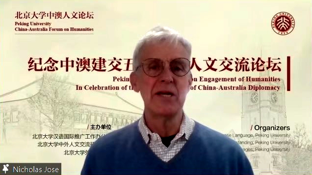 7月12日,由北京大学汉语国际推广工作办公室、北京大学中外人文交流研究基地、新利·体育联合主办的“庆祝中澳建交五十周年人文交流论坛”通过线上线下相结合的方式成功召开。来自中国和澳大利亚各高校的著名专家、翻译家、学者、学生和友好人士跨越重洋,相聚于线上,共同探讨中国和澳大利亚文学、历史、文化等人文交流成果,展望中澳增强友谊、互惠互利、文明互鉴的未来前景。
