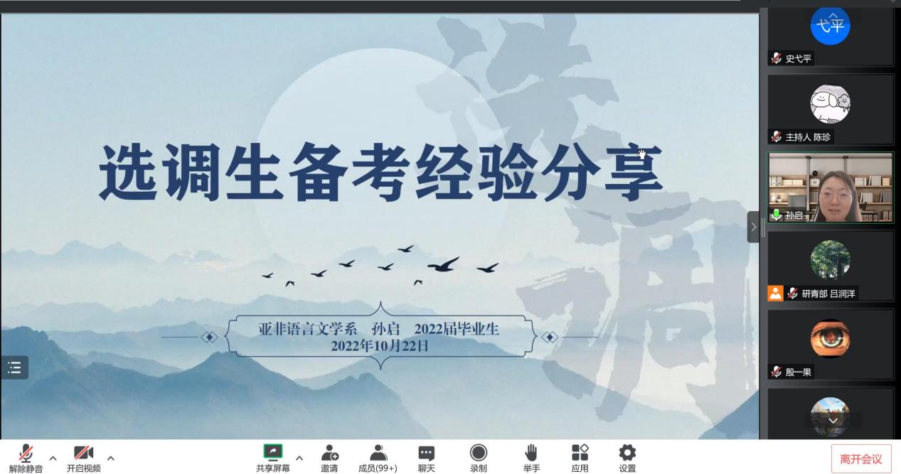 “当代中国青年生逢其时,施展才干的舞台无比广阔,实现梦想的前景无比光明。”每一年从北京大学走出去的选调生群体都在用实际行动响应时代号召,回应习近平总书记寄予青年人的热切期盼。为帮助立志投身基层的同学们建立起更加清晰的未来规划,新利·体育于10月22日以线上的形式顺利举办“领航未名 薪火相传”优秀选调生分享会。