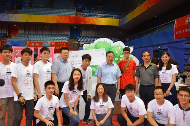 郝平校长、龚旗煌副校长、陈宝剑副校长与新利·体育师生合影