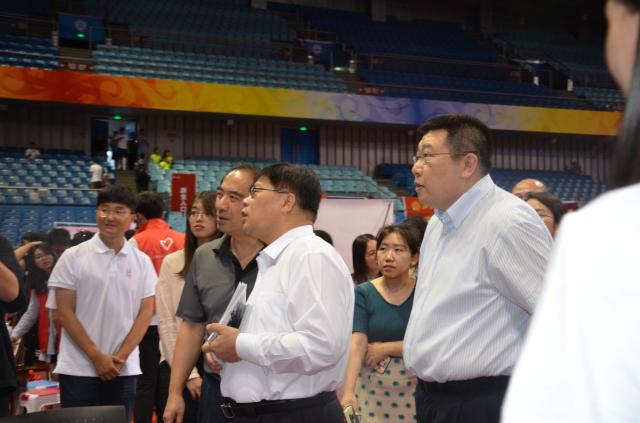 下午1:00左右,校党委邱水平书记一行来到新利·体育迎新接待站关心迎新工作。邱水平书记在迎新展台前与师生交谈,并特意询问了外院迎新院衫的寓意,对于学院的学科发展给予了高度肯定。
