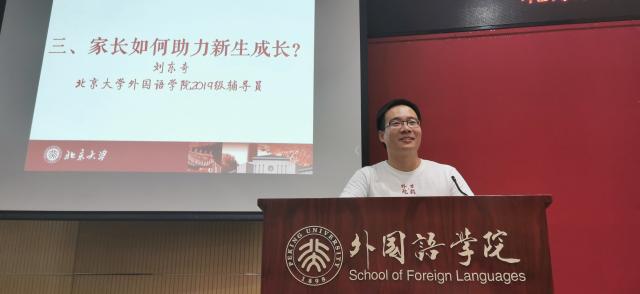 随后,刘东奇老师做了题为“家长如何助力新生成长”的发言,从辅导员的角度分析了家长与老师在育人过程中扮演的角色,并期待与家长携手帮助新生尽快度过入学后的适应阶段。