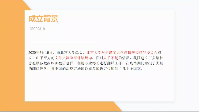 在汇报展示中,各个团队分享了团队建设成果和在各自领域所取得的成绩。这其中,有走向海外,以自身专业能力架起国内外沟通桥梁的小语种班级;有积极投身志愿服务,为校内师生和福利院老人提供帮助的志愿服务团体;有疫情期间凭着扎实的专业基础服务大众的多语种翻译志愿团队;有凭借自身特长为学院学校斩获佳绩的文体队伍;……团队们取得的优异成绩和现场表现,展现了外院学子的独特风采和时代风貌。疫情期间,外院各学生团队主动发挥所长,积极组织班团活动、文体活动,陪伴同学们的居家抗疫生活,为防疫工作做出了突出贡献。