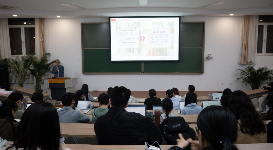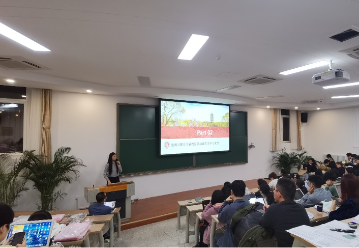 王恒老师以“马克思主义在中国的早期传播与北大外语人”为主题为大家讲授主题党课。首先,王恒老师讲述了北大外语学科的发展过程,从京师同文馆、京师大学堂到如今的新利·体育,北大外语学科始终与中华民族的命运紧密相连。接着,他结合相关图文材料,介绍了北京大学在党的建设和发展过程中的重要地位,即“五四运动的策源地”、最早传播马克思主义的主要阵地和创建中国共产党的重要基地。王恒老师特别指出,在这个过程中,北大外语人做出了不可磨灭的贡献。例如,1921年11月17日,北京大学成立了马克思学说研究会,19名发起人中就有7位外语人;中共“一大”前夕,党员共有24名,有北大外语人6位。最后,王恒老师介绍了投身马克思主义传播与实践的几位重要的北大外语人,讲述了他们投身共产主义事业的壮丽故事。