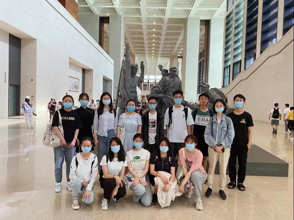 参观完最后一个展厅,全体团支部成员在大厅的雕像前合影理念。这次活动给大家留下了深刻印象,无论是欣赏雕工细致的古代乐器,抑或是仰望巨制宏伟的党史油画,还是游览扶贫攻坚的摄影长廊,都帮助大家重温了国家记忆里那些或光明或黑暗,或宏大或细节的部分,在历史画面的一幕幕放映中,看到灿烂文明的悠久历史,与来之不易的复兴成果。中国共产党接过了历史的接力棒,带领着中华儿女走过荆棘丛生的近代社会,朝着共同富裕的方向迈步前进。铭记历史,坚定信心,不辱使命,愿我们昂首阔步,续写中华民族新的辉煌!