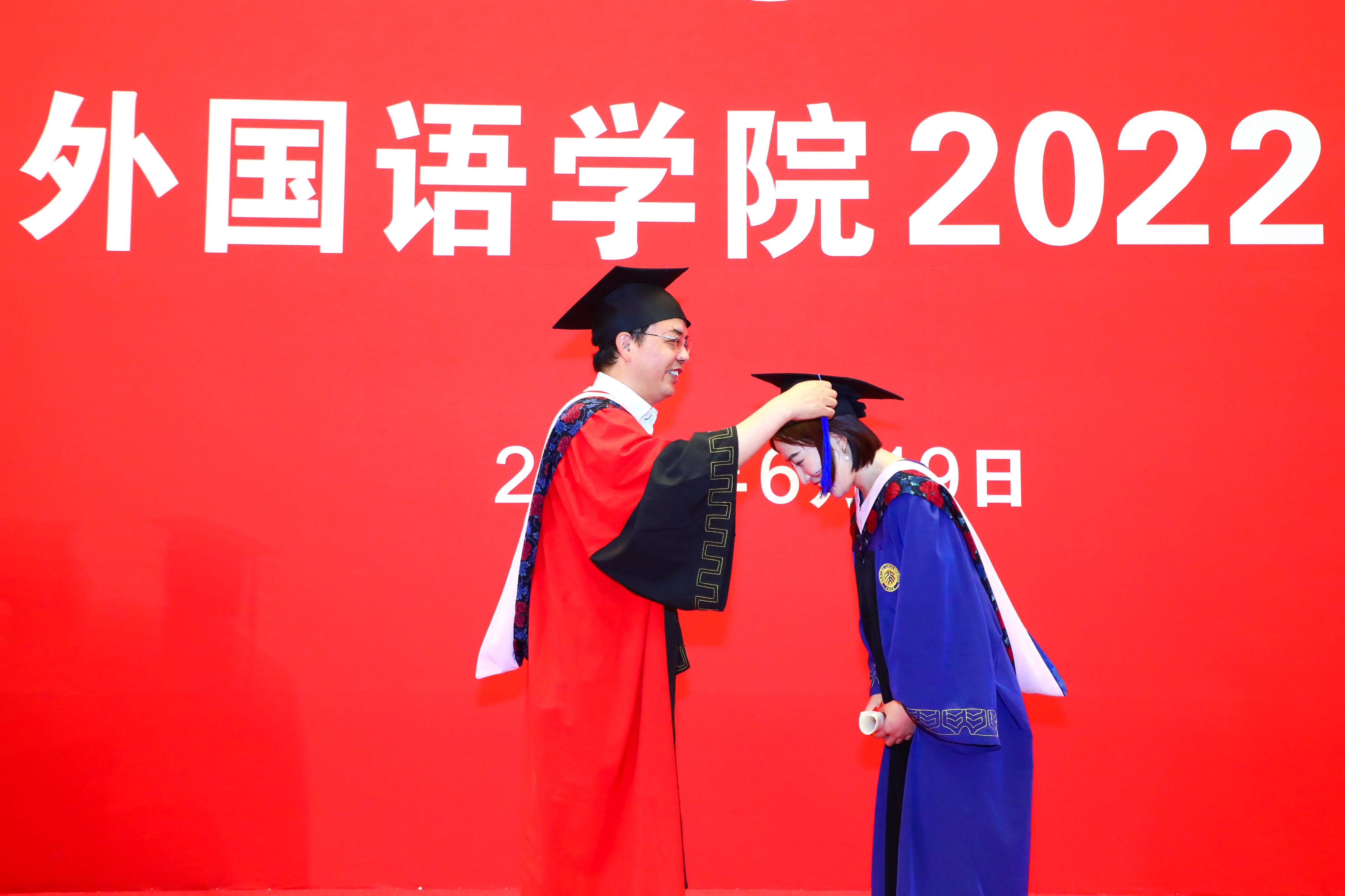 2019级西亚系硕士毕业生曲翔前作为硕士毕业生代表发言。他回顾了七年外院生活的点点滴滴:可爱的“外院人”给予他温暖与感动,多年的外语学习教会他包容和理解,“世界在我脚下,祖国在我心中”的外院精神激励他不断前行。即将奔赴基层工作的他表示,将永远秉持外院人心怀家国的使命传承,努力向下扎根,在乡村振兴的大潮中贡献自己的力量。
