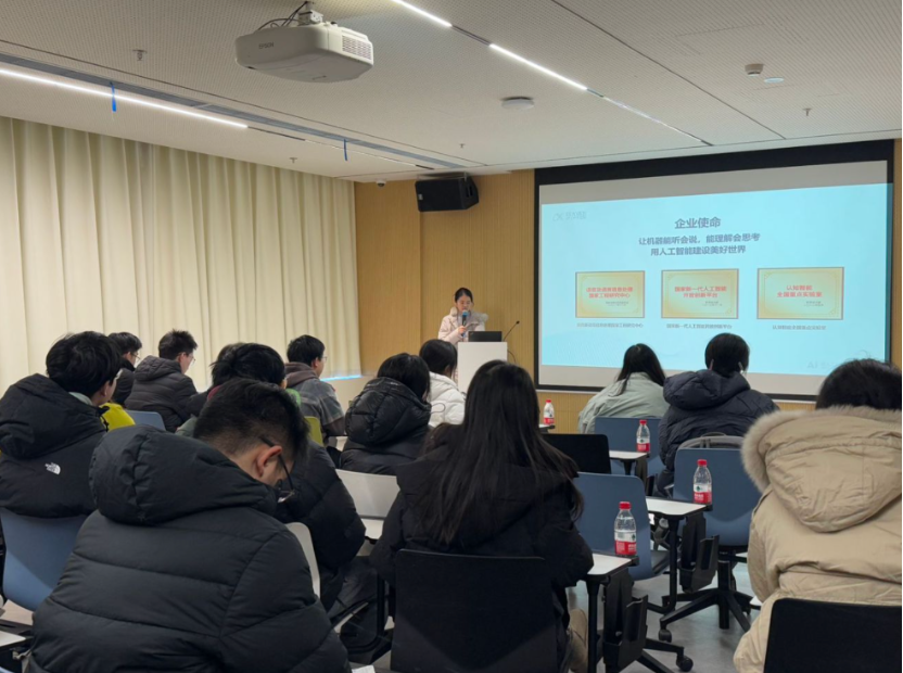 随后,企业工作人员围绕公司架构、业务范围和人才发展体系,介绍了“飞星计划”和“飞凡计划”,结合这两大人才招聘和培养计划向同学们详细解析了科大讯飞的人才政策。科大讯飞致力于培养和发掘未来企业的领导者,为应聘者们提供了顶尖课题、富有竞争力的薪酬、导师带教、定制化发展路径,以项目带培养、以热爱为导向,为员工构建全方位、高标准的福利保障体系,充分体现公司对员工的关怀与激励。