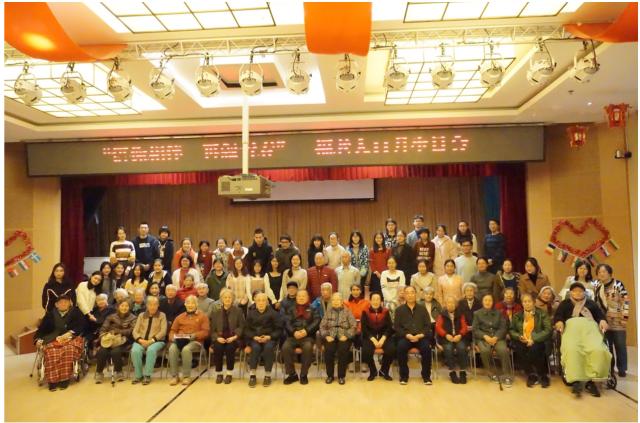 2018年11月23日下午,来自北京大学的42名志愿者在新利·体育青年志愿者协会的组织下来到了北京市第一社会福利院,为福利院中当月过生日的老人们举办了一场别开生面的生日会。