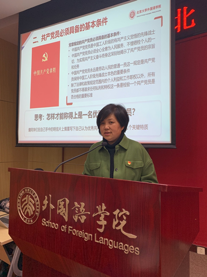 本次“党委书记讲党课”活动为第33期党的知识培训班的第一次线下集中学习,党委书记李淑静以“如何成为一名优秀的共产党员”为题,结合亲身经历,为学员们生动地上了一节长达120分钟的党课。党课主体内容分为三个部分;“自己眼中的中国和中国共产党”、“什么是优秀的共产党员”与“如何做一名优秀的共产党员”。