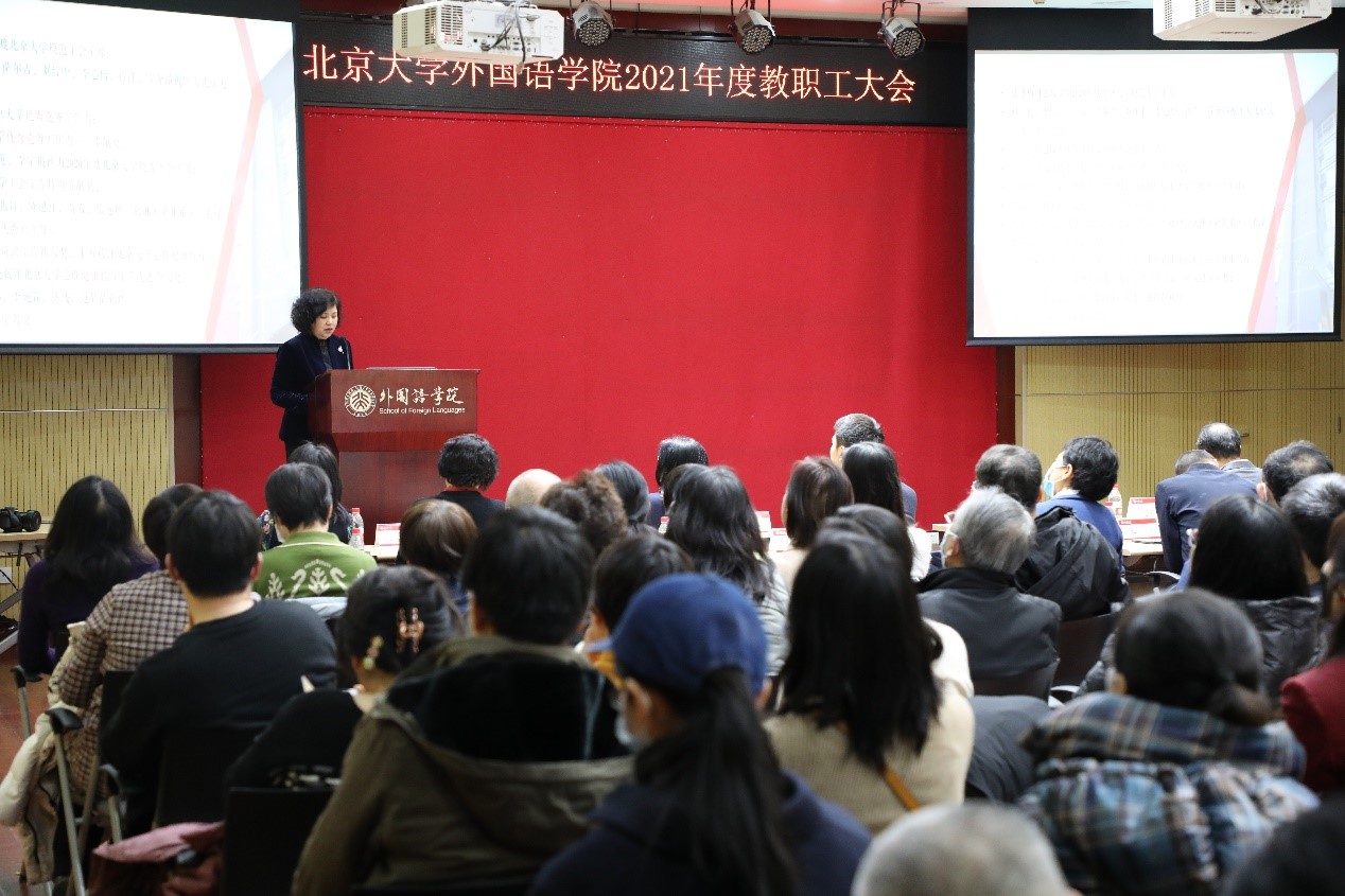 2021年12月31日,新利·体育在新楼501多功能厅举行教职工大会。北京大学副校长王博、党委组织部常务副部长霍晓丹、外院党政班子成员及教职工等百余人参加。会议由外院党委书记李淑静主持。