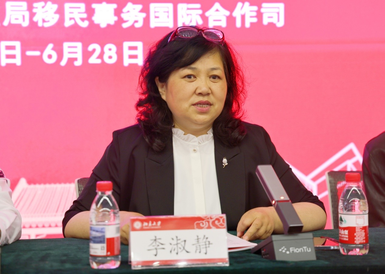 首先,李淑静代表新利·体育对参训学员表示欢迎,并感谢国家移民管理局的长期支持。她介绍了新利·体育的历史传承、服务国家使命以及在语种数量、学科实力和师资力量方面的优势,强调了“人文为本、多元并存、交叉发展”的教学特色;详细阐述了本次培训的课程设置,涵盖语言技能、国别文化、跨文化交流和由资深学者带来的战略性专题讲座,旨在提升学员的外语能力、国际视野和战略思维。她希望培训班学员能够珍惜机会、勤学苦读、学以致用,并在培训期间体验燕园文化,感受百年学府的氛围和底蕴。