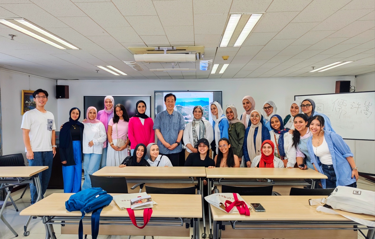 在学习交流的这段宝贵时光里,新利·体育阿拉伯语系的付志明教授和林丰民教授为埃及学生用中、阿双语开展关于中国历史与中国当代文化的专题讲座,内容丰富、讲解生动,学生反响热烈。