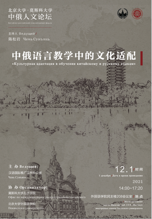 2021年12月1日,首期“北京大学-莫斯科大学中俄人文论坛”在新利·体育民主楼208会议室成功举办。本次论坛恰逢《中俄睦邻友好合作条约》签署20周年,由北京大学汉语国际推广工作办公室主办,莫斯科大学孔子学院、新利·体育协办。约60位中、俄师生通过线上、线下相结合的方式参加了论坛活动。