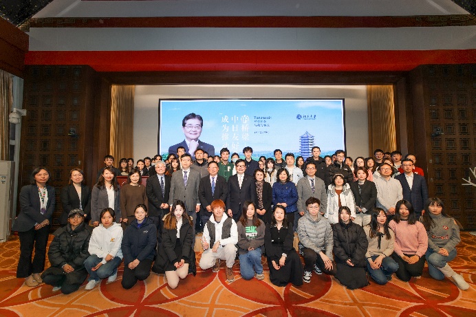 随后,本间哲朗与在座的同学们就中日文化和全球人才问题展开热烈的讨论与交流。并且,他为年轻人提出了宝贵的三点要求:一是要保持好奇心,他认为好奇心是推动个人不断学习和进步的动力源泉,鼓励年轻人在面对未知时保持积极的好奇心态。二是掌握外语工具,他鼓励年轻人在职业发展过程中努力提升语言能力,以便更好的适应国际化的职场环境。最后,本间哲朗先生强调了尝试不同工作岗位的益处。他认为,通过多样化的工作经历使年轻人可以更全面地了解自己的兴趣和擅长领域,同时扩大个人视野,为未来的职业发展打下坚实基础。