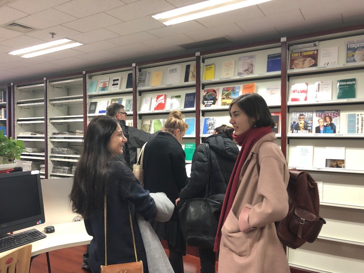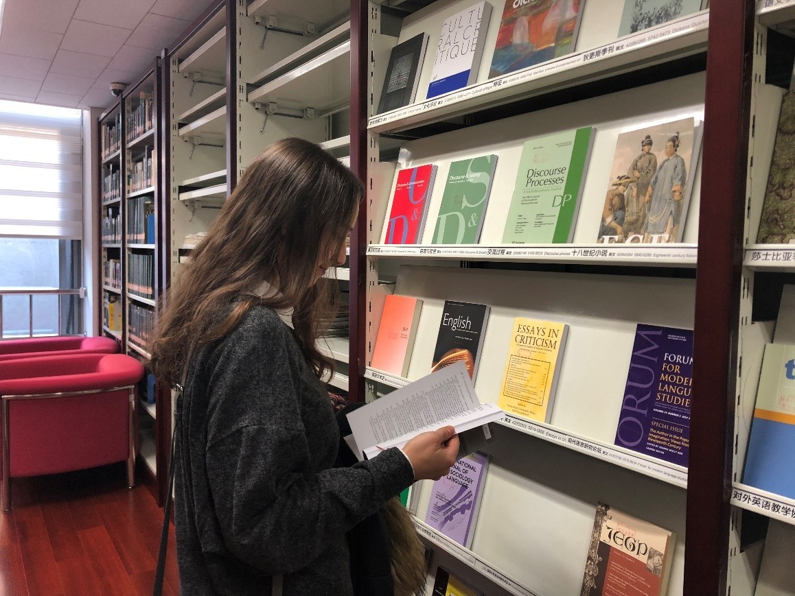 在交流及答疑之后,新利·体育图书分馆馆长张晓雁老师就学院图书分馆的发展历程、藏书量、服务政策等信息进行了详细介绍,并带领外籍教师们参观图书分馆。各位外籍教师就自己教学语种及研究方向的藏书情况、数据库资源向张老师进行了详细咨询。