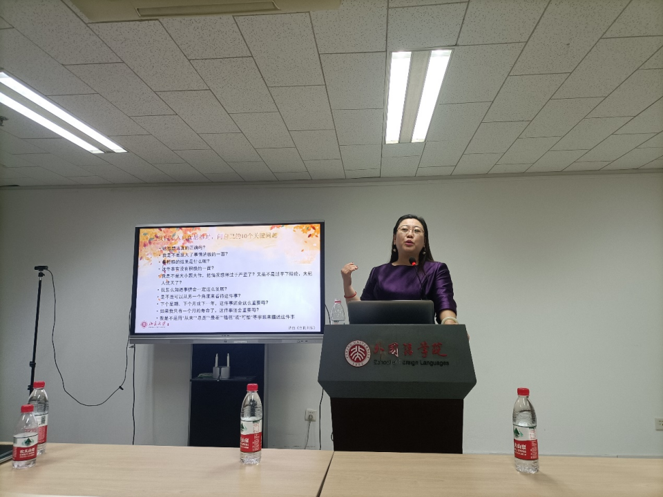 随后,刘卉以一系列生动形象的例子,强调了正确对待生活中的压力和逆境的重要性,勉励同学们学会与自己和解,接纳不完美的自己,并介绍了“问自己10个关键问题”等正确处理负面情绪的方法。围绕“女性职场压力”主题,刘卉针对女性如何进行社会心理调节与人格魅力建设等问题,指出女性应避免陷入“完美主义”的陷阱,并给出了“烦恼失忆症”等压力消解方式。最后,刘卉指导同学们展开“抱怨与选择”“分辨颜色”等趣味练习活动,讲座在同学们的认真练习与互动中结束。