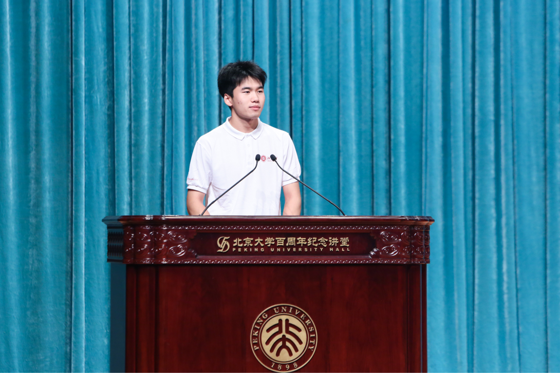 硕士生新生代表、东南亚系2022级的谭博特,深情回忆自己与北大外院的缘分。他期待在外院尽情进行学术探索,牢固基础、发掘兴趣,学习世界其他国家民族所特有的文化模式与思维方式;他回顾了参加新中国成立70周年庆祝大会的经历,立志在外院学术探索的同时,不忘家国,承担责任。他与大家共勉:执着所爱、踏实求学、简单生活、真诚纯粹,一如入学之初的少年模样。