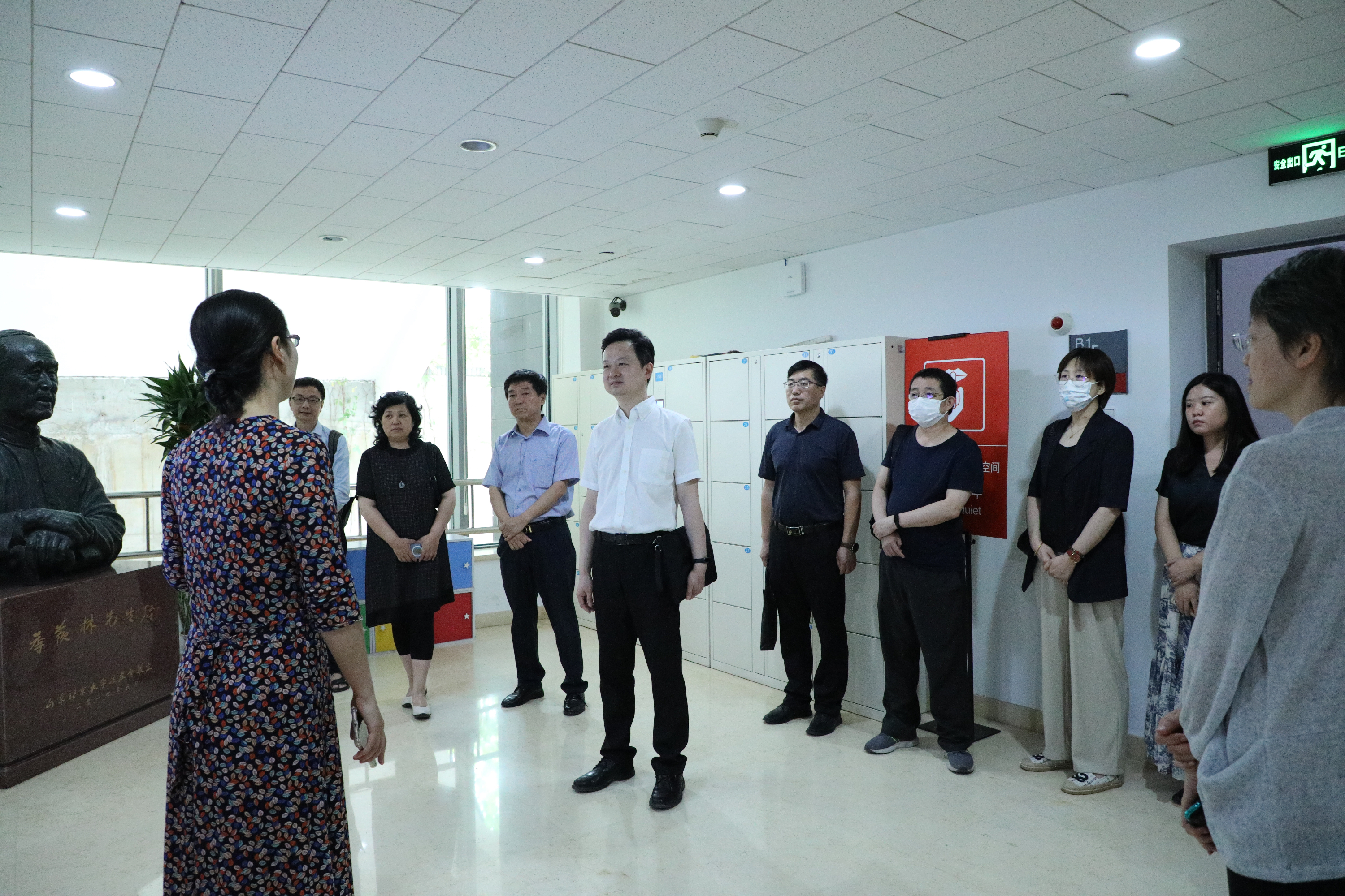 签约仪式前,华侨历史博物馆副馆长宁一、贾德成一行来到北京大学图书馆新利·体育分馆参观,院党委书记李淑静、副院长吴杰伟陪同,图书分馆馆长张晓雁向华侨历史博物馆的领导和专家们介绍了外国语言文学学科的图书资料建设情况。
