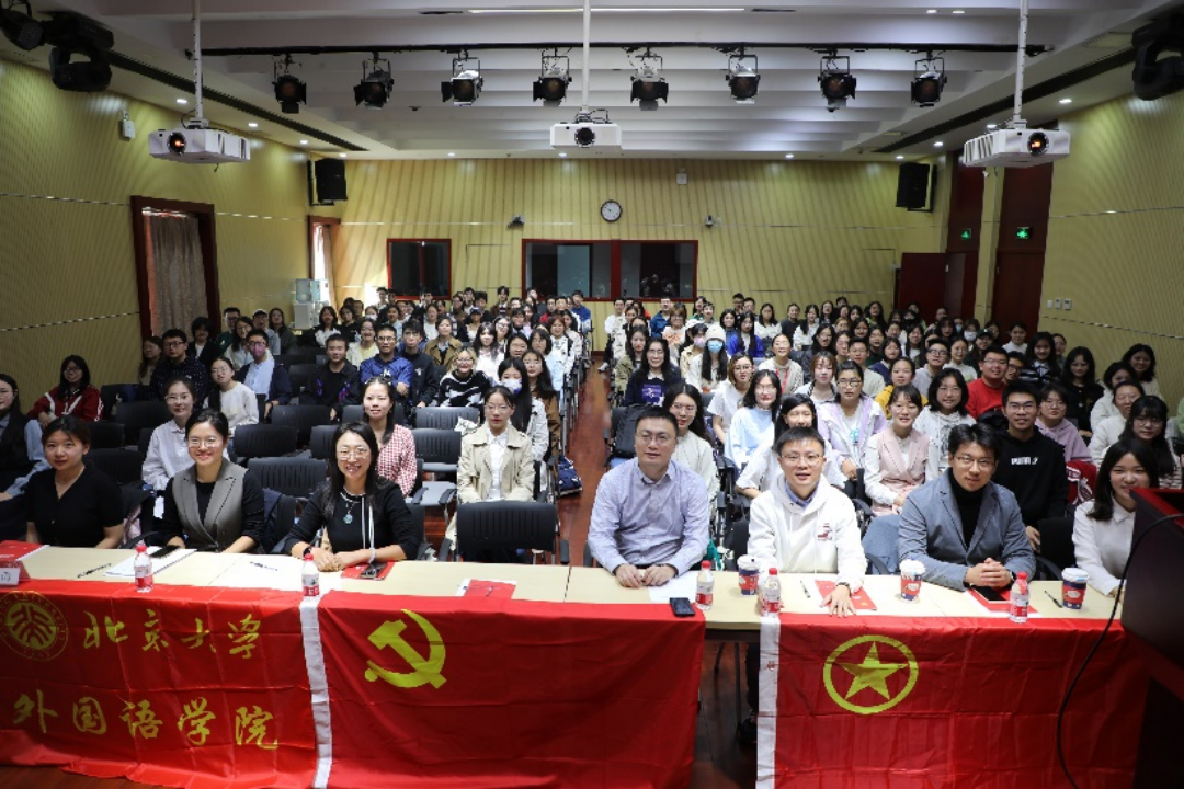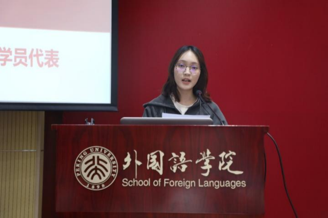 院党委书记李淑静为团校的新学员们送上师长的殷殷嘱托。她表示,外院党委始终坚持“团校姓党”的根本原则,关注团校发展,助力青年成长。她对团校在提升学员思想品德素质与实践创新能力方面的作用表示了肯定。同时,她结合自己在北大学习和工作的经历对新一届团校的学员们提出了三点希望:一是厚植家国情怀,不忘初心使命;二是夯实理论基础,提高政治修养;三是广结良师益友,携手团结奋进。她表示,非常高兴看到朝气蓬勃的团校学员们与拥有厚重历史底蕴的北大外语学科相遇,希望学员们都可以学有所得、学有所悟、学有所成,在未来的学习、工作和人生选择中,不负党和人民的殷切期望。
