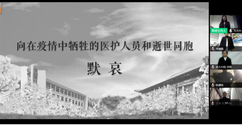 4月4日是清明节,会议伊始,全体与会成员起立默哀一分钟,向在疫情中牺牲的医护人员和逝世同胞默哀,表达追思,感谢他们为中国抗疫行动做出的巨大牺牲与贡献。