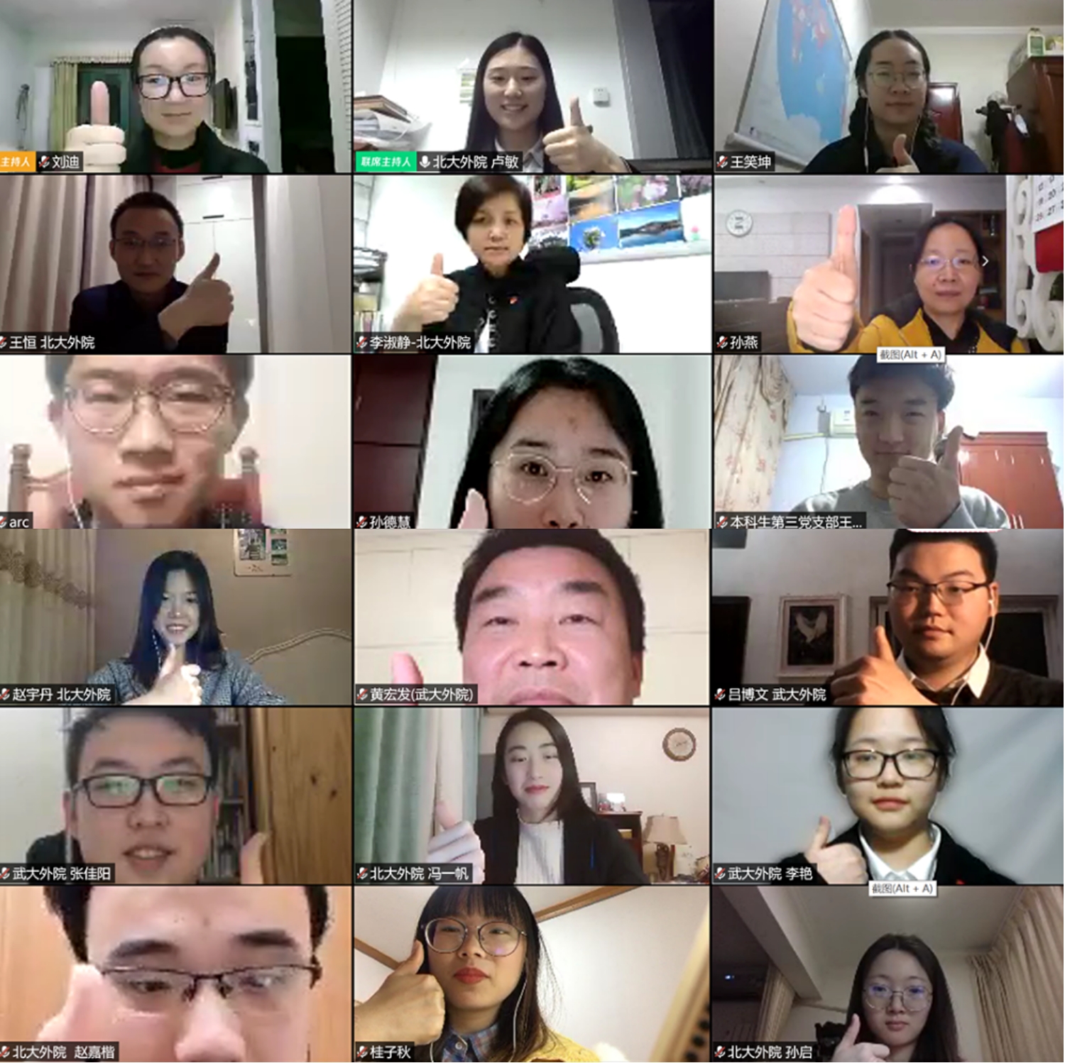 会议最后,全体师生“点赞”合影,向依然奋战在武汉抗疫一线的北京大学援鄂医疗队队员表达崇高敬意。