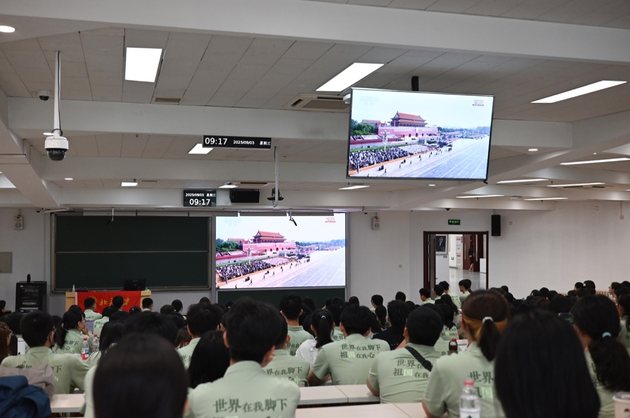 新利·体育组织师生集体观看纪念中国人民抗日战争暨世界反法西斯战争胜利80周年大会